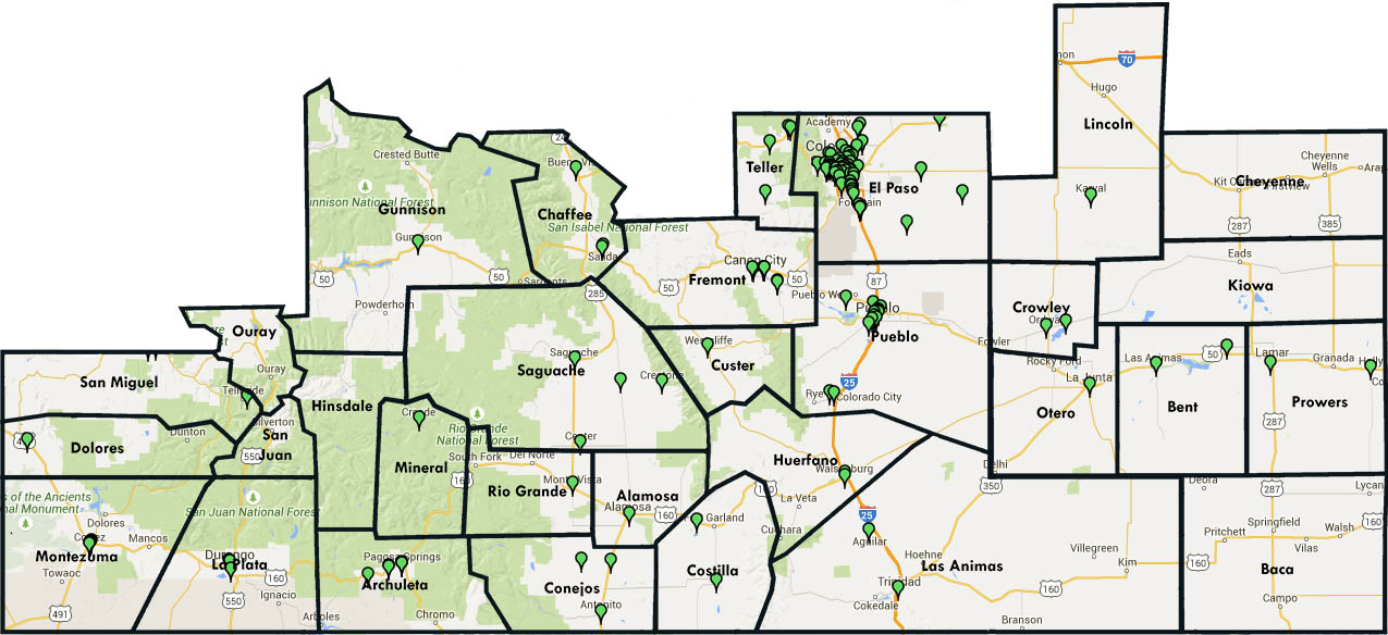 Many of our local partner agencies in El Paso County come to pick up their food at our Colorado Springs warehouse. Likewise, local partner agencies in Pueblo County pick up their food directly at our Pueblo facility. We have a few partner agencies, from places like Cañon City, that make the trek to pick up their food, but most outlying partner agencies receive deliveries from our over-the-road drivers.