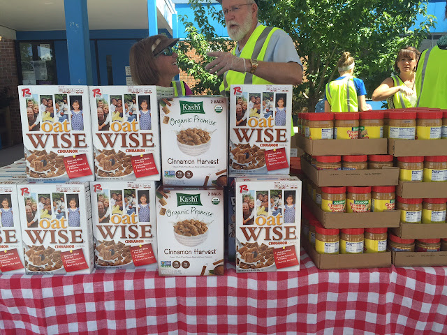 Yesterday, we conducted a Mobile Food Pantry at Mark Twain Elementary School. This service is held in conjunction with their summer meal program. When children come for their snacks and meals, their parents can receive food from the Mobile Food Pantry to supplement their cupboards at home and stretch their grocery budgets. Families receive fresh fruits and vegetables, bread, and pantry staples such as peanut butter and cereal.